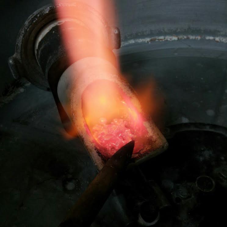 involves: investment, a hot kiln, a big torch, molten metal, and