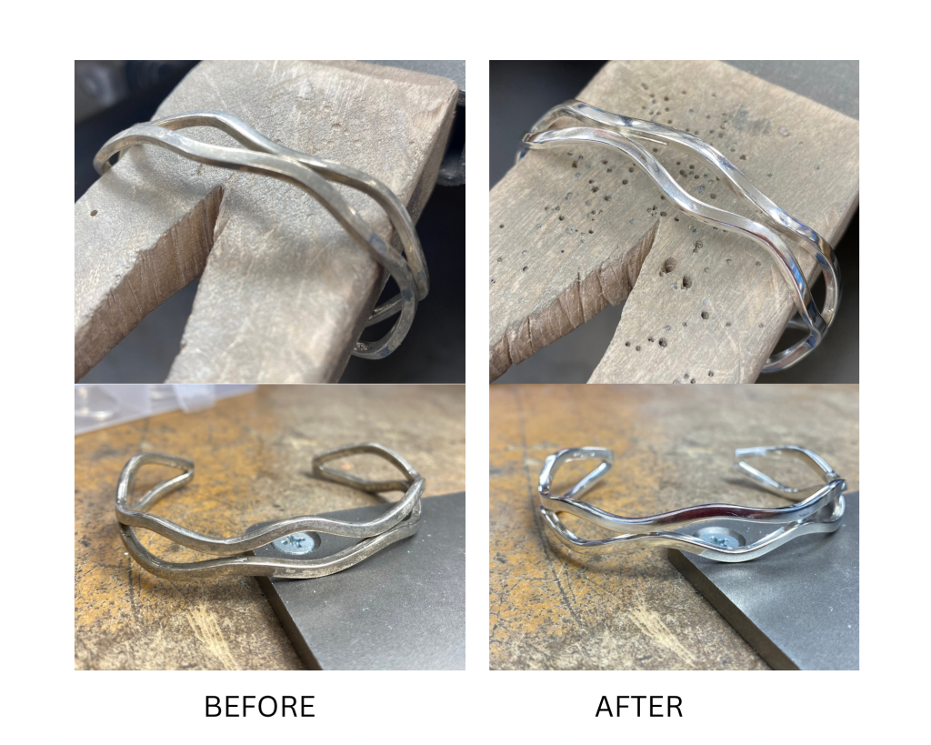 For years of wearability, jewellery should be cleaned frequently. It is not advisable to let a thick coating of black tarnish build up on your jewellery as it can eventually eat away at metals and create permanent damage to the piece.
